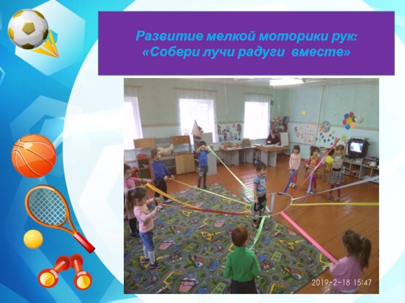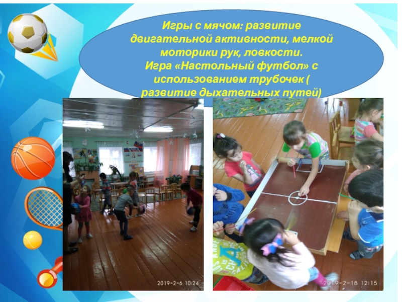 Слайд 16Игры с мячом: развитие двигательной активности, мелкой моторики рук, ловкости.