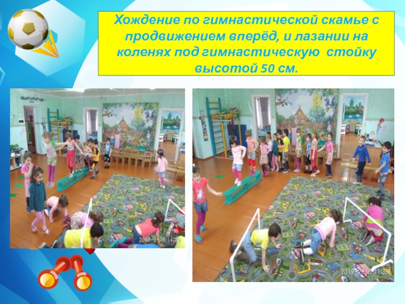 Хождение по гимнастической скамье с продвижением вперёд, и лазании