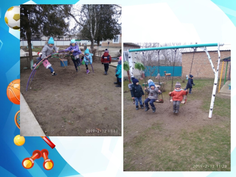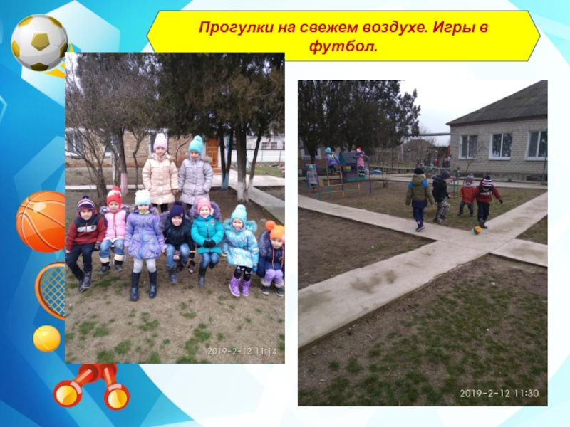 Слайд 22Прогулки на свежем воздухе. Игры в футбол.