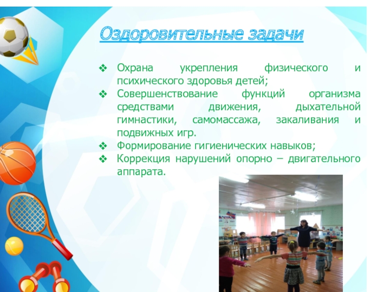 Слайд 7Оздоровительные задачи