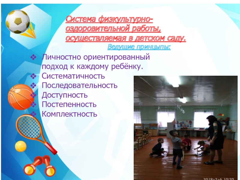 Слайд 9Система физкультурно-оздоровительной работы, осуществляемая в детском саду.