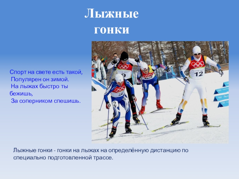 Лыжные гонки - гонки на лыжах на определённую дистанцию по специально подготовленной трассе.