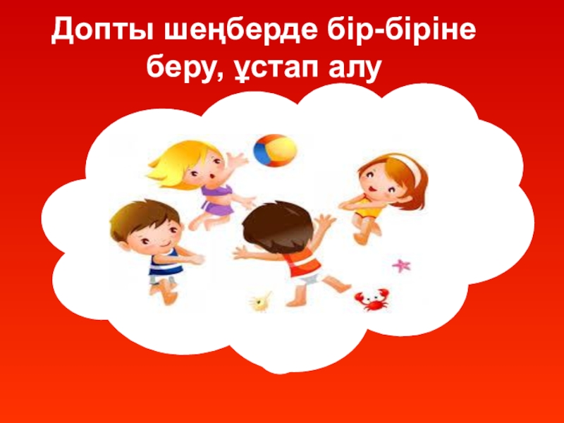 Слайд 7Допты шеңберде бір-біріне беру, ұстап алу