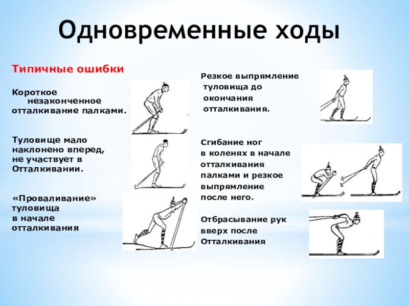 Основным элементом одновременных ходов является одновременное отталкивание лыжными палками.