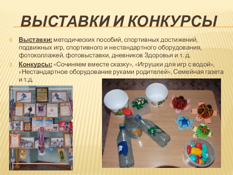 Конкурсы: «Сочиняем вместе сказку», «Игрушки для игр с водой», «Нестандартное оборудование руками родителей», Семейная газета и т.д.