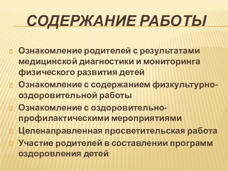 Ознакомление с содержанием работы по сохранению и укреплению здоровья