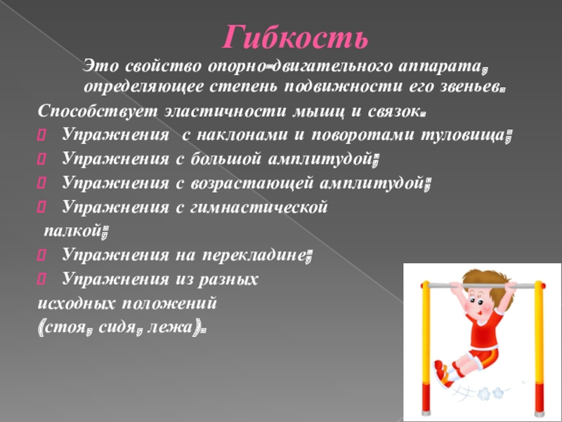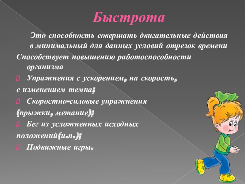 Физические качества (быстрота, сила, ловкость, выносливость, гибкость).