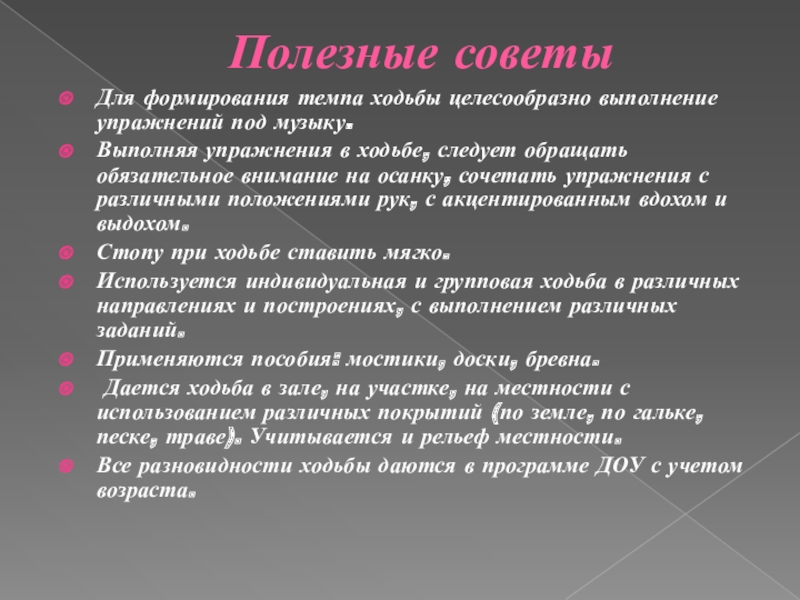Спокойная ходьба успокаивает деятельность органов дыхания и кровообращения после большой нагрузки.