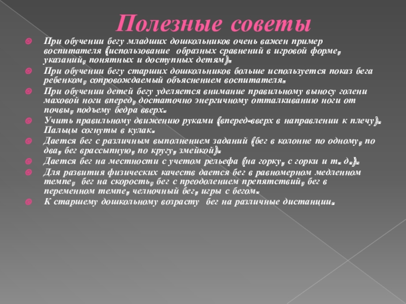 Упражнения в беге в среднем и медленном темпе продолжительное время;