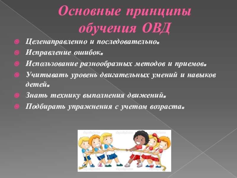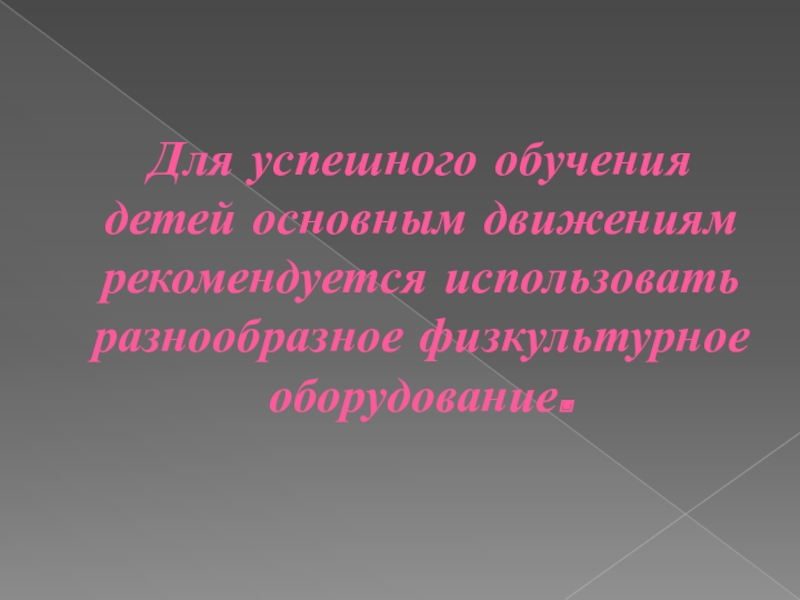 Слайд 48Для успешного обучения детей основным движениям рекомендуется использовать разнообразное физкультурное оборудование.