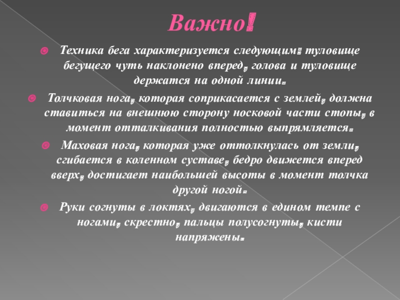 Руки двигаются в направлении вперед-назад, способствуют сохранению равновесия.