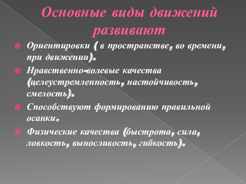 Успешное усвоение основных движений требует определенного уровня развития чувства равновесия.
