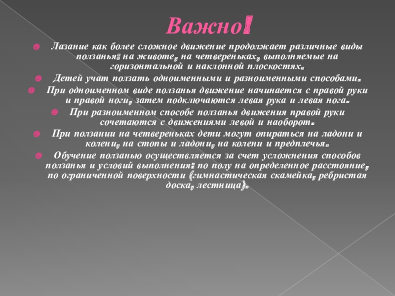 оно постепенно и связано с совершенствованием функций коры головного мозга, развития вестибулярного аппарата, своеобразного мышечного чувства, которое помогает ребенку определять положение тела в пространстве, а также изменение положения тела.