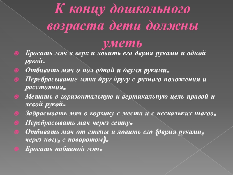 Слайд 45К концу дошкольного возраста дети должны уметь