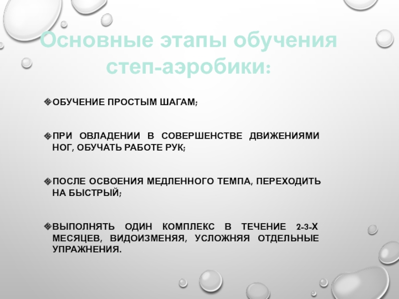 Основные этапы обучения степ-аэробики: