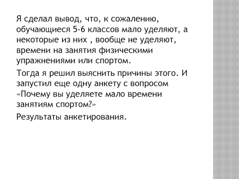 Слайд 6Я сделал вывод, что, к сожалению, обучающиеся 5-6 классов мало уделяют,