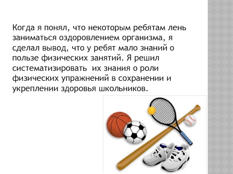 Слайд 7Когда я понял, что некоторым ребятам лень заниматься оздоровлением организма, я