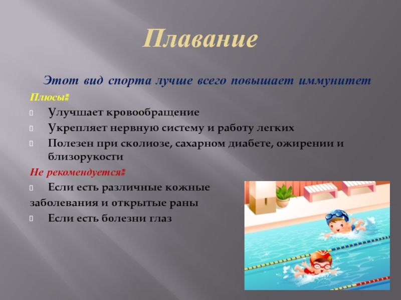 Полезен при сколиозе, сахарном диабете, ожирении и близорукости