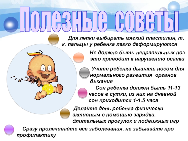 Для лепки выбирать мягкий пластилин, т.к. пальцы у ребенка легко деформируются
