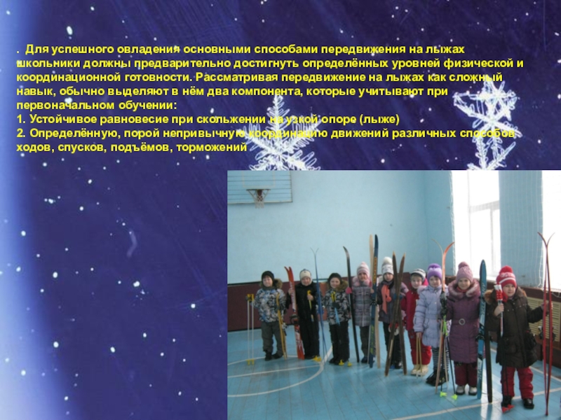 Слайд 23. Для успешного овладения основными способами передвижения на лыжах школьники должны