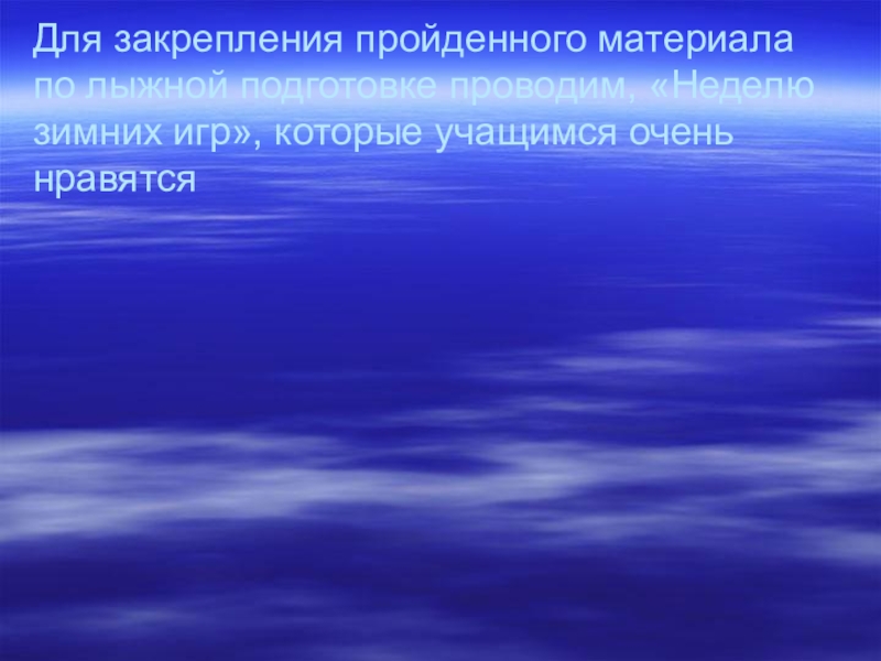 Слайд 30Для закрепления пройденного материала по лыжной подготовке проводим, «Неделю зимних игр»,