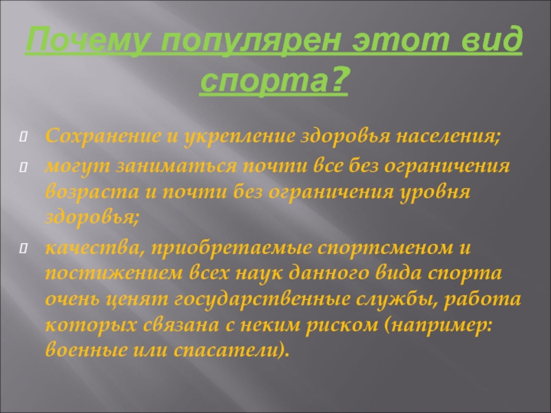 Слайд 6 Почему популярен этот вид спорта?