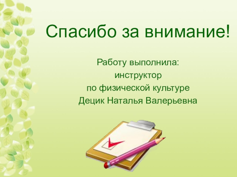 Спасибо за внимание!Работу выполнила: инструктор по физической культуре Децик Наталья Валерьевна
