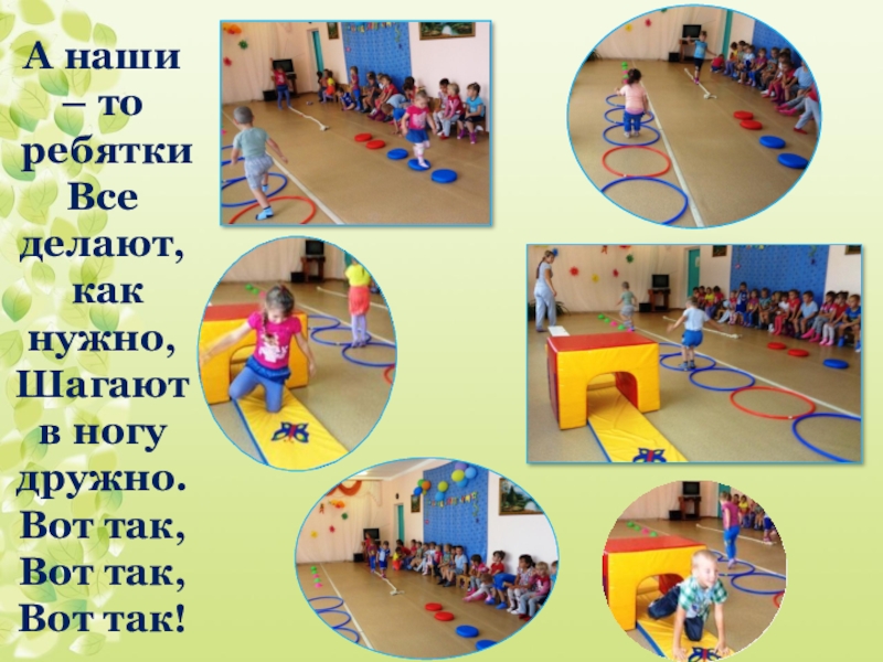 Слайд 3А наши – то ребятки Все делают, как нужно, Шагают в ногу дружно. Вот так,