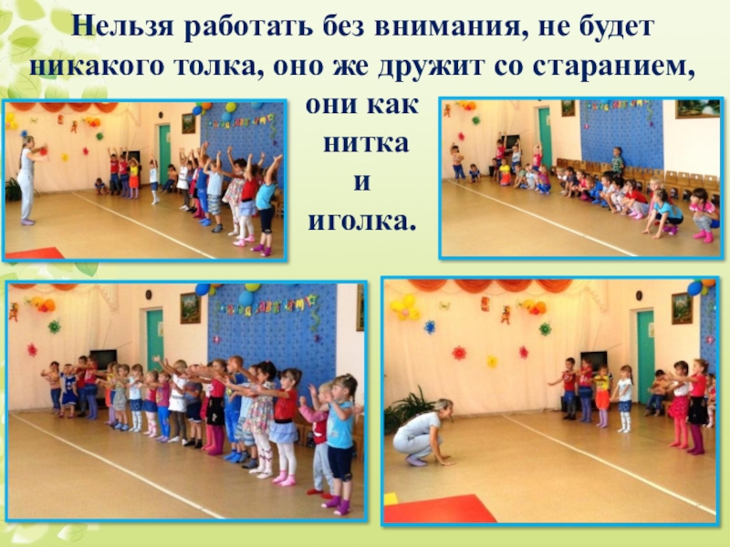 Слайд 5Нельзя работать без внимания, не будет никакого толка, оно же дружит