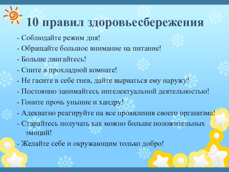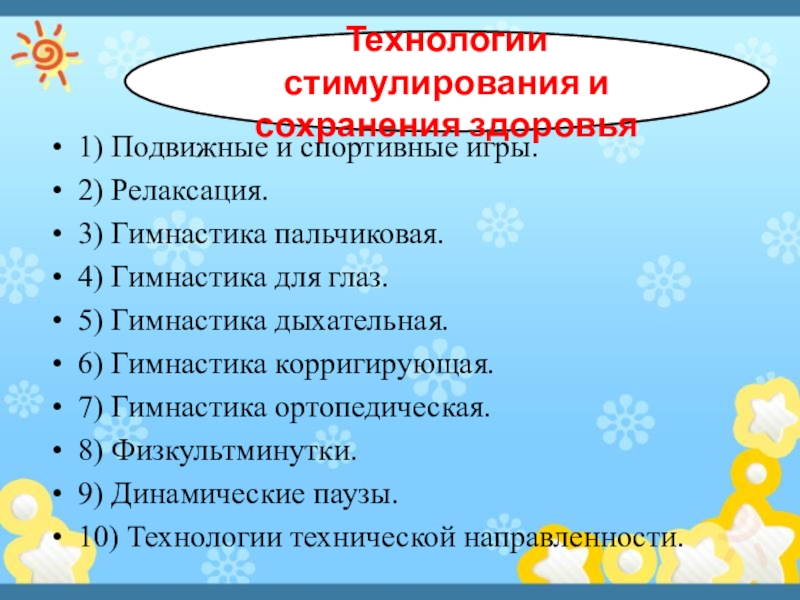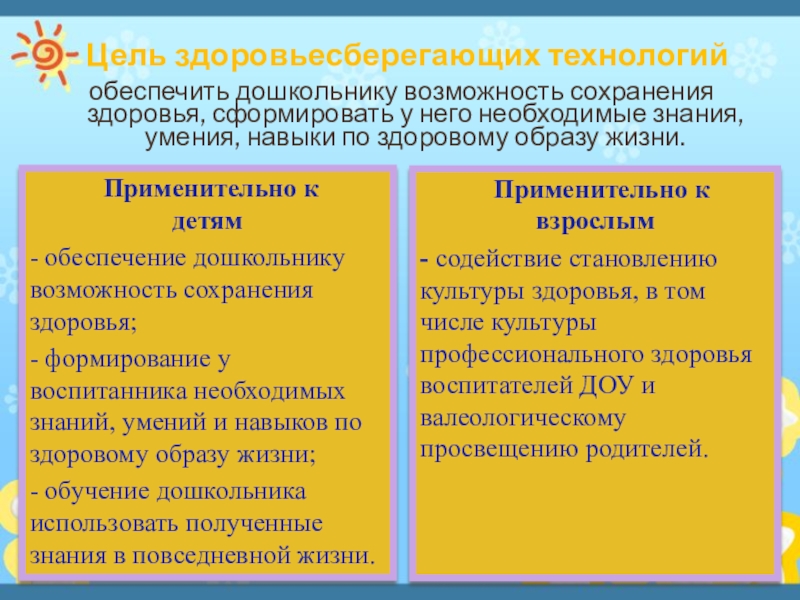 - обеспечение дошкольнику возможность сохранения здоровья;