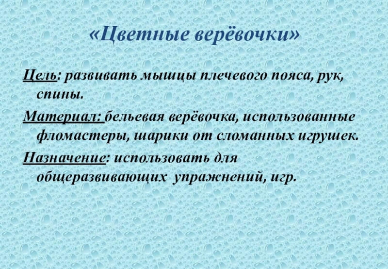 Назначение: использовать упражнения для координации движений, развитии глазомера.