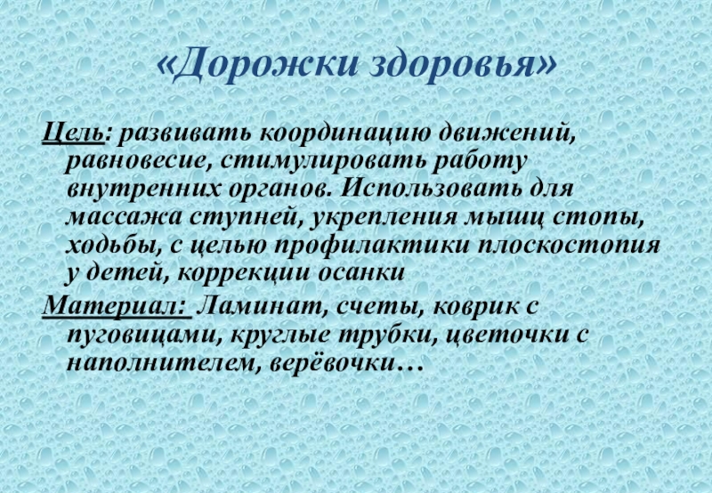 Цель: развивать координацию движений, равновесие, стимулировать работу внутренних органов. Использовать