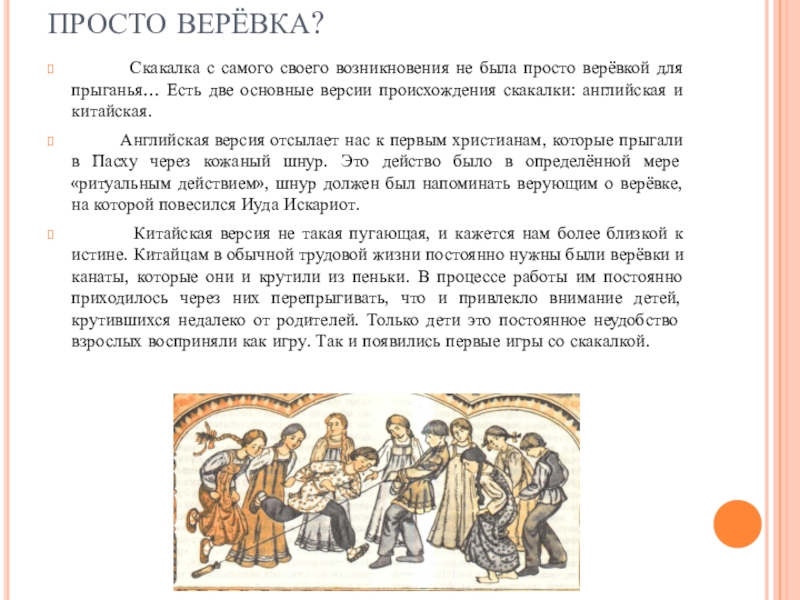 не была просто верёвкой для прыганья… Есть две основные версии происхождения скакалки: английская и китайская.