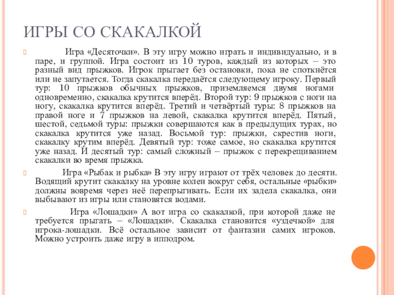 Слайд 5ИГРЫ СО СКАКАЛКОЙ