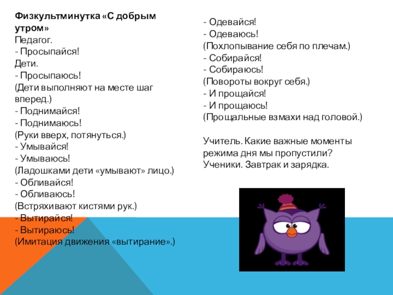 Учитель. Какие важные моменты режима дня мы пропустили?