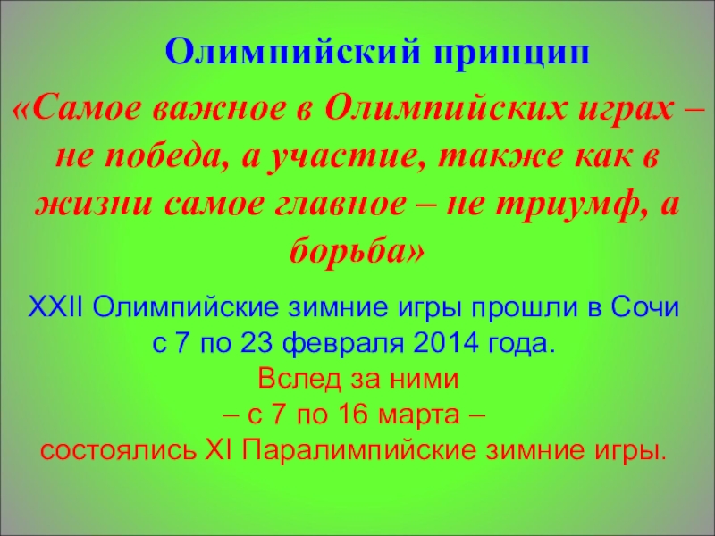 XXII Олимпийские зимние игры прошли в Сочи