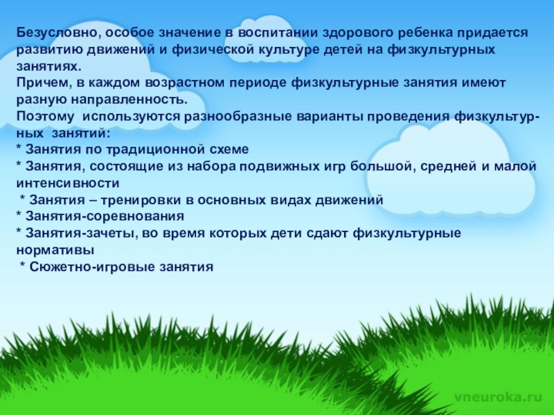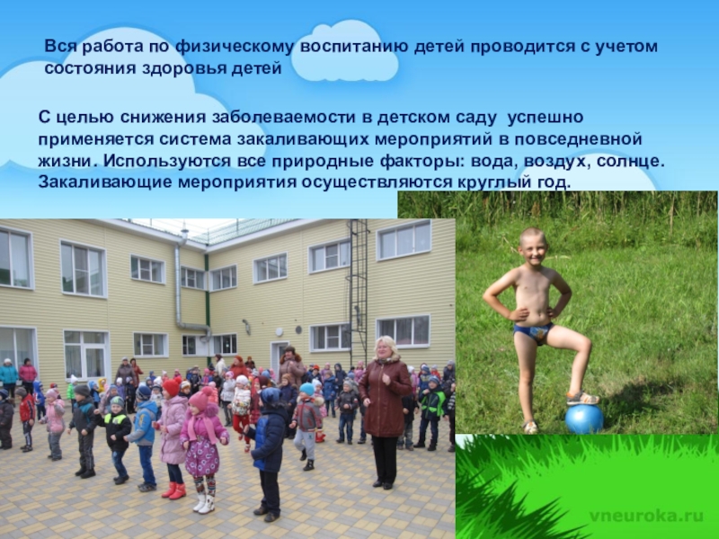 Вся работа по физическому воспитанию детей проводится с учетом состояния здоровья детей