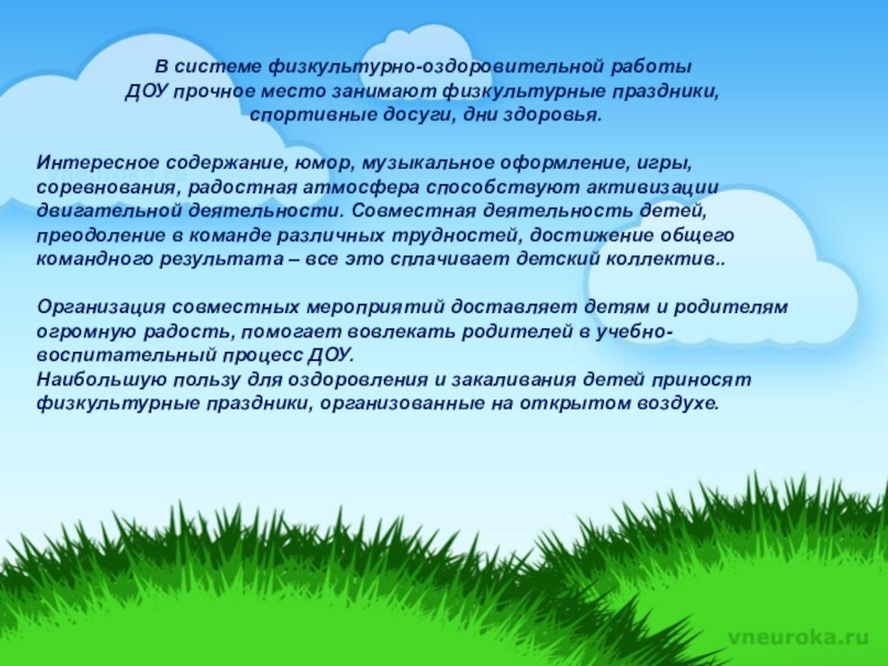 физкультурно-оздоровительной работы в ДОУ.