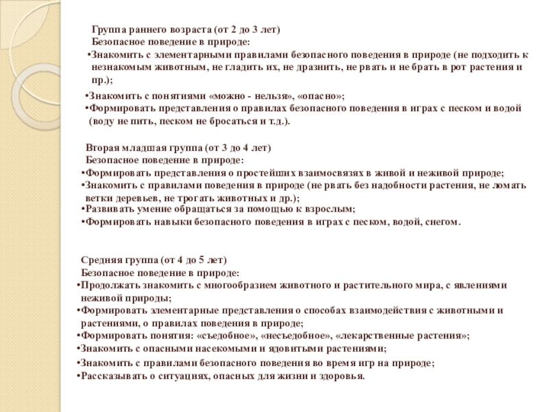 Знакомить с правилами безопасного поведения во время игр на природе;