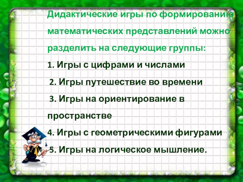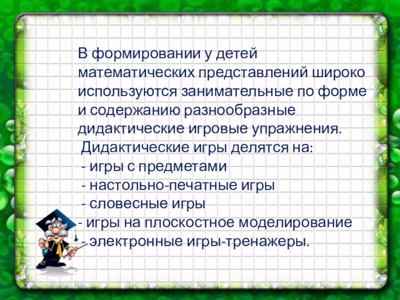 Слайд 5Дидактические игры по формированию математических представлений можно