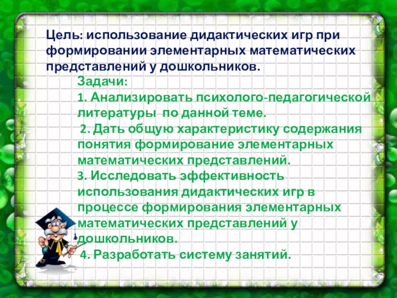 3. Исследовать эффективность использования дидактических игр в процессе формирования элементарных математических представлений у дошкольников.