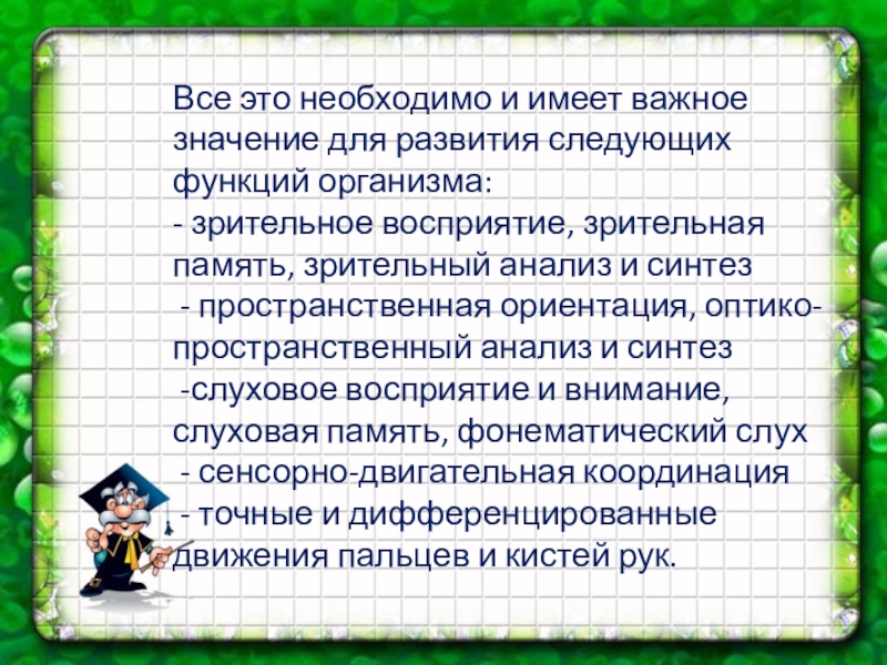 - зрительное восприятие, зрительная память, зрительный анализ и синтез