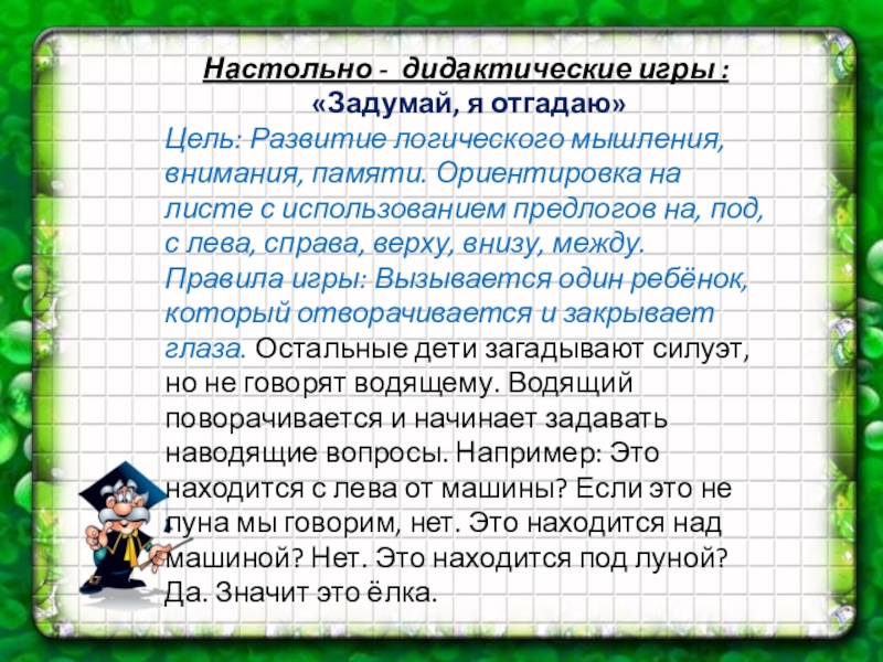 внимания, памяти. Ориентировка на листе с использованием предлогов на, под, с лева, справа, верху, внизу, между.