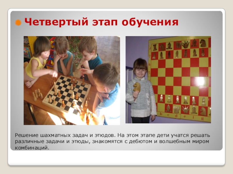 Слайд 7Решение шахматных задач и этюдов. На этом этапе дети учатся решать