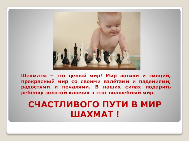 Слайд 10СЧАСТЛИВОГО ПУТИ В МИР ШАХМАТ !