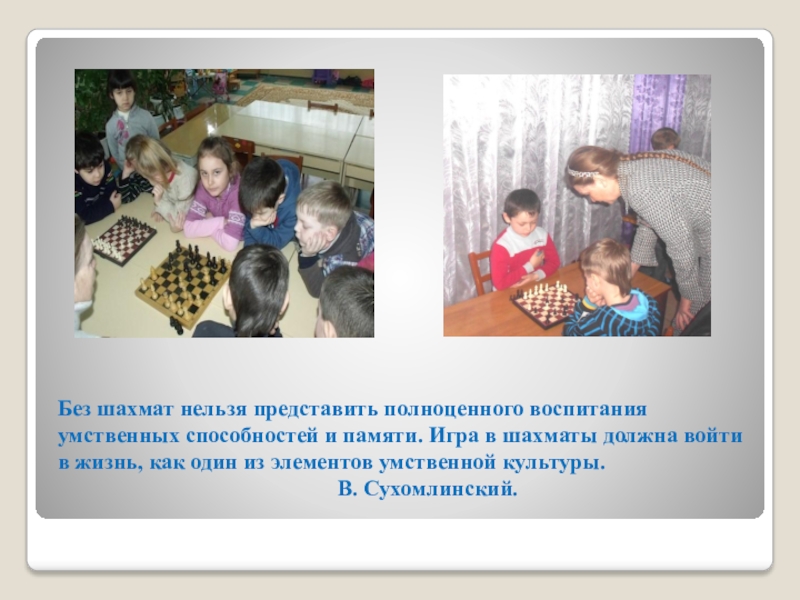 Слайд 2Без шахмат нельзя представить полноценного воспитания умственных способностей и памяти. Игра