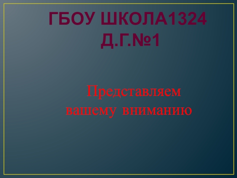 ГБОУ ШКОЛА1324 Д.Г.№1 Представляем вашему вниманию