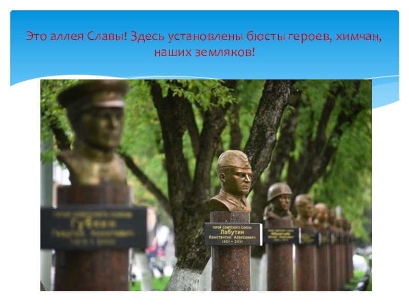 Слайд 12Это аллея Славы! Здесь установлены бюсты героев, химчан, наших земляков!