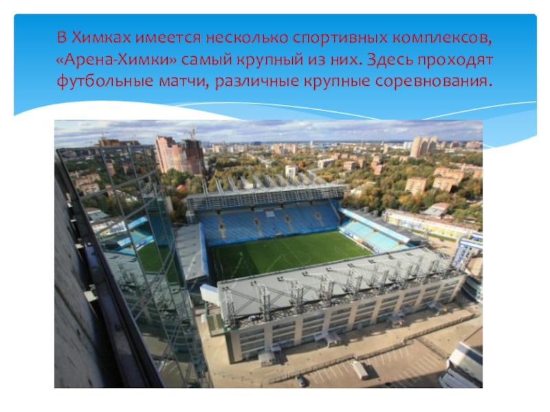 Слайд 17В Химках имеется несколько спортивных комплексов, «Арена-Химки» самый крупный из них.