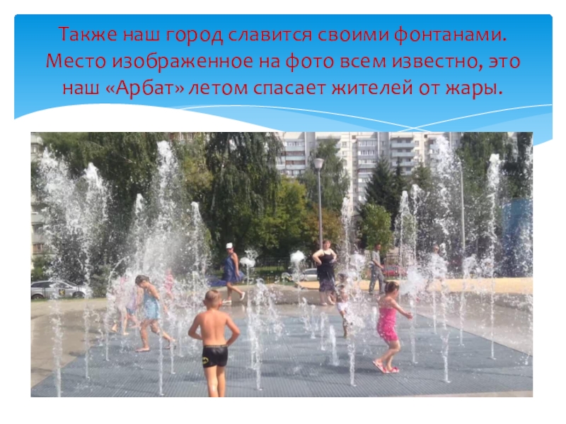 Слайд 6Также наш город славится своими фонтанами. Место изображенное на фото всем